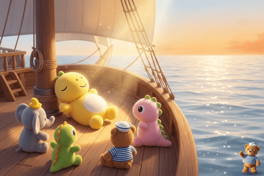 Sunny the dinosaur loved the sunshine. When morning came, Sunny the dinosaur found the warmest spot on the deck and stretched out. The sun gave a golden hug.The breeze was soft.The sea shimmered. One by one, the toys came and … Readmore