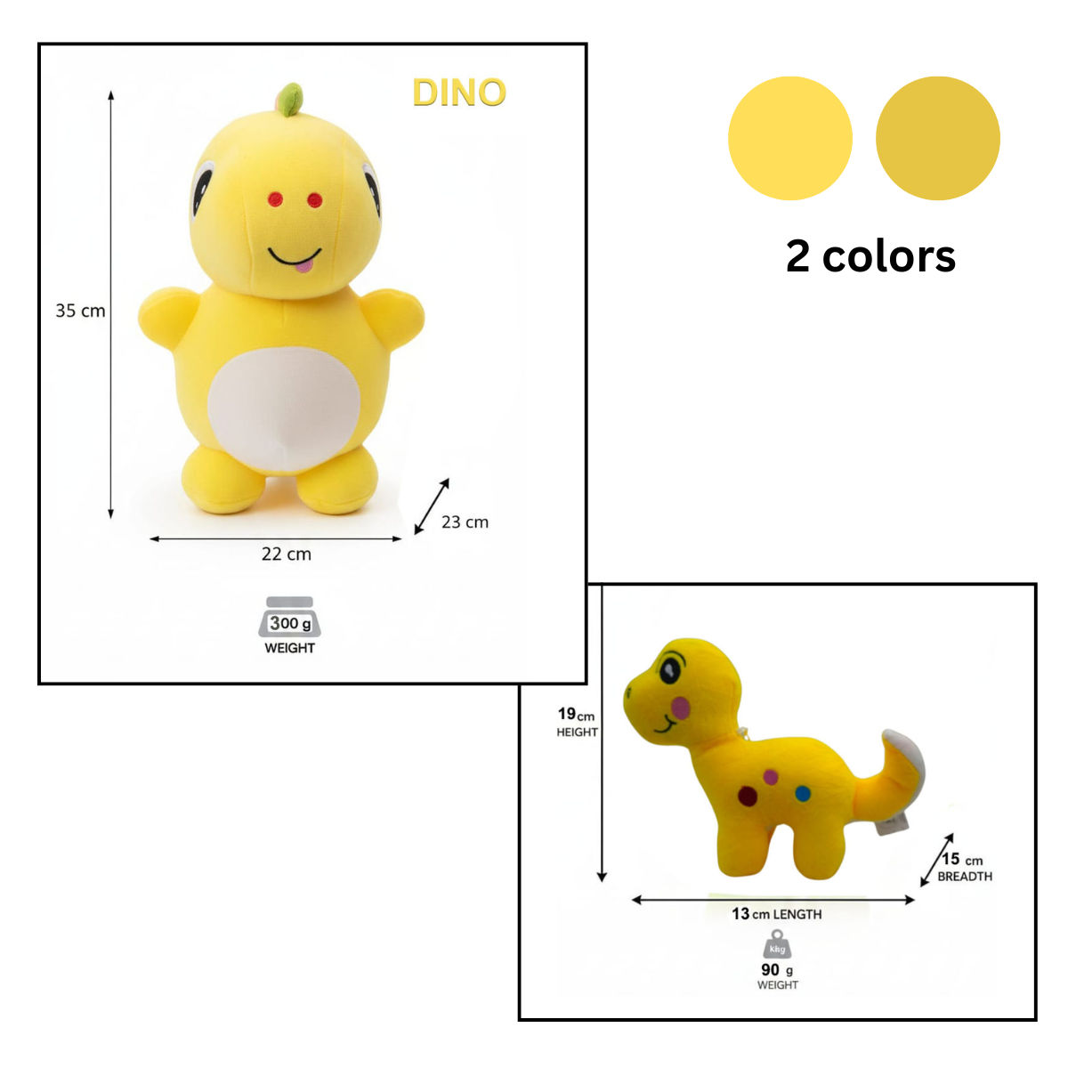 Dinosaur Combo of 2 Yellow & Yellow Soft Plush Toy for Kids (2+ Years) | Toyship