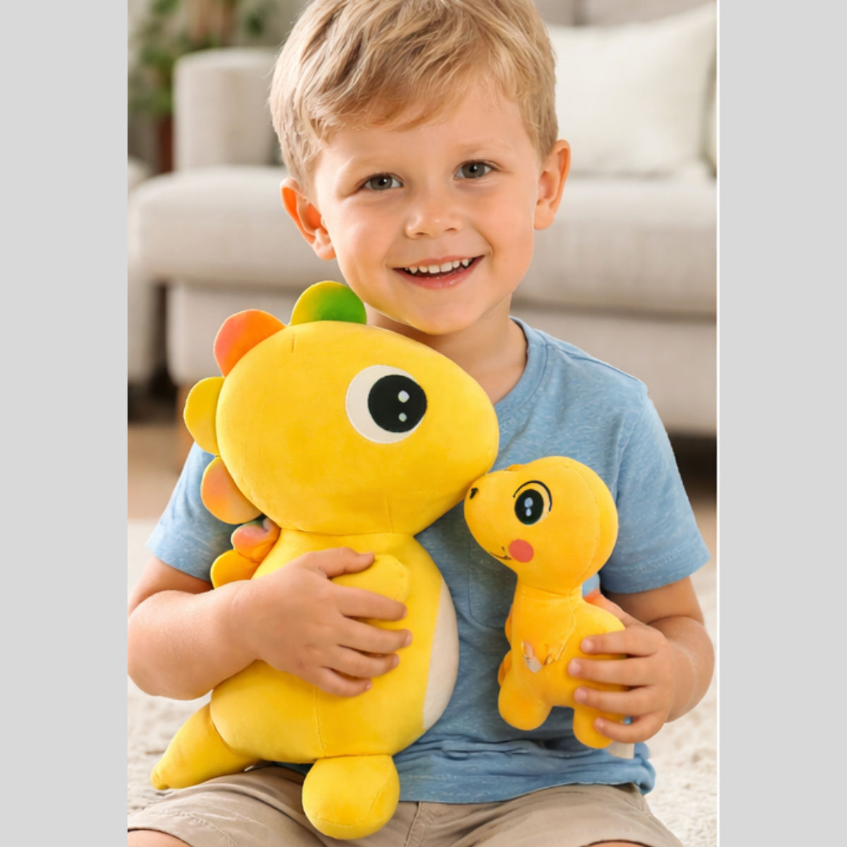 Dinosaur Combo of 2 Bring Home Extra Cuteness! Made with super-soft, high-quality plush fabric, this toy is designed to be safe, gentle, and perfect for toddlers and kids of all ages.