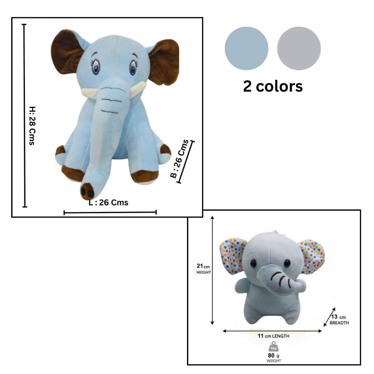 Elephant Combo of 2 Bring Home Extra Cuteness! Made with super-soft, high-quality plush fabric, this toy is designed to be safe, gentle, and perfect for toddlers and kids of all ages.