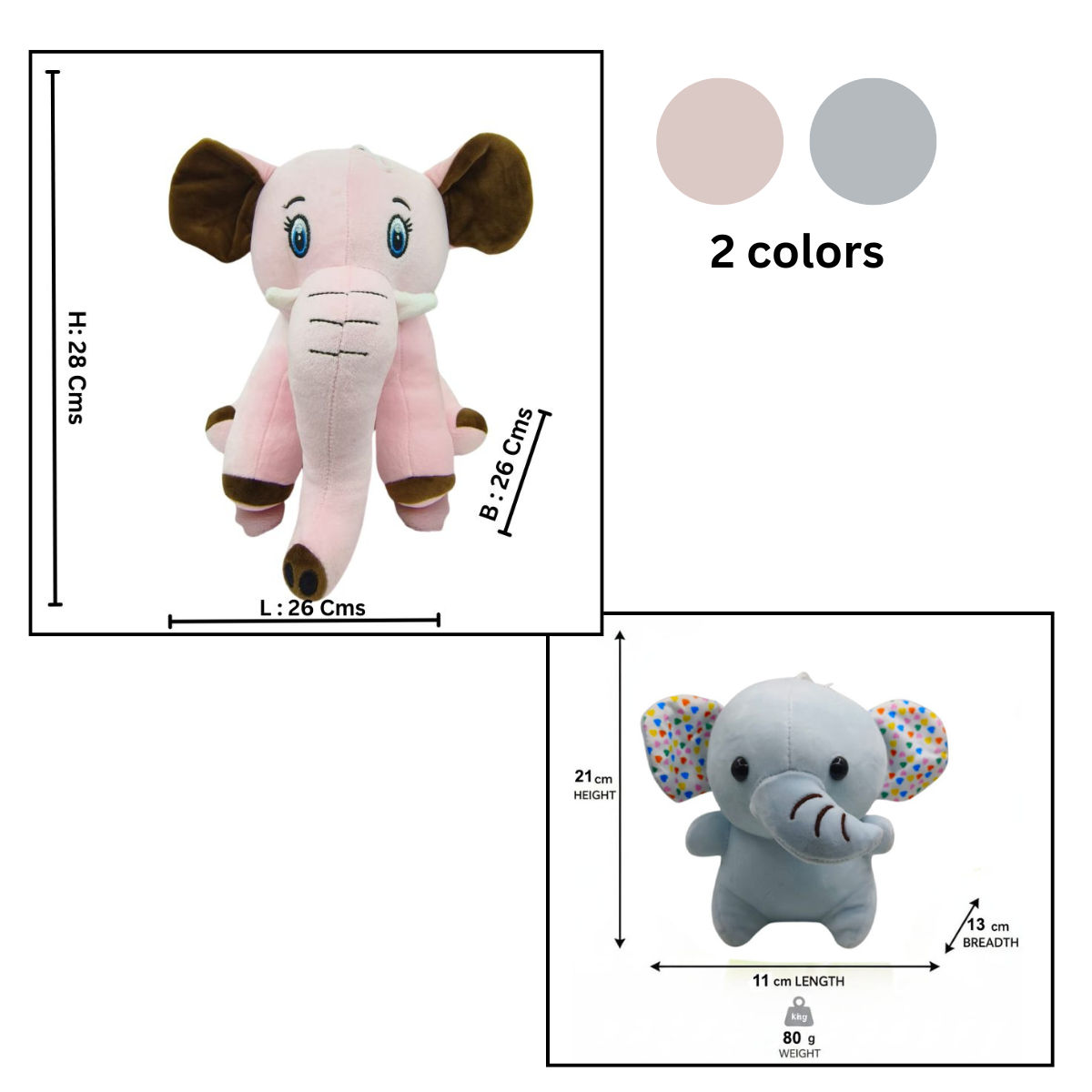Elephant Combo of 2 Bring Home Extra Cuteness! Made with super-soft, high-quality plush fabric, this toy is designed to be safe, gentle, and perfect for toddlers and kids of all ages.